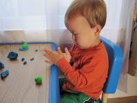 Cameron has the knack for creativity, I think. She loves to color and does a pretty good job at it. And play doh was no different. She played for over an hour! Both she and Timothy started out enjoying it and somewhat realized the concept of shaping and molding it, but Timo quickly grew tired of it and was picking it all apart throwing it on the floor. Cameron just kept going and going.